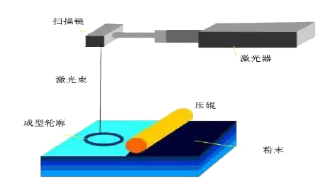 将铺在工作台上的原料粉末预热到熔化点后,通过激光扫描使粉末按照二维数据烧结成一定厚度的实体片层,一层一层反复操作,之后再经过打磨、烘干等后处理即可获得成品。